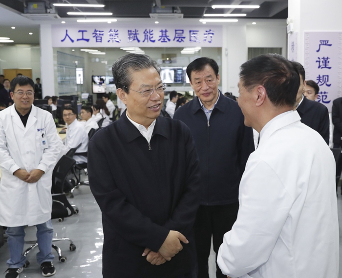 3月31日至4月3日,中共中央政治局常委、中央纪委书记赵乐际到江西省调研。这是4月2日,赵乐际在江西中科九峰智慧医疗科技有限公司考察。 新华社记者 丁海涛 摄