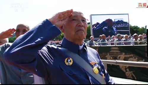 2015年9月3日,在纪念反法西斯战争胜利七十周年阅兵式上敬礼的余新元,曾与两代雷锋结缘