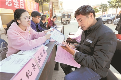 云南省陆良县纪委监委坚持把惩治“蝇贪”同扫黑除恶相结合,组织各级纪检监察干部深入基层一线,深挖细查群众身边的涉黑涉恶腐败和充当“保护伞”问题。图为日前,该县纪委监委干部在板桥镇开展现场接访活动。摄影/王勇(云南省陆良县纪委监委宣传部部长)