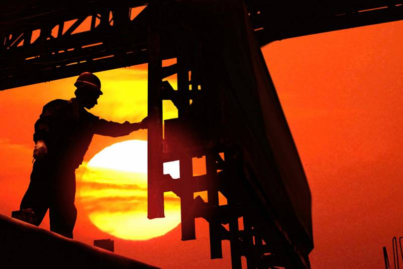 夕阳余晖下,云南省德宏州芒市建筑工人把纵横钢架当作耕耘的“田野”,在高楼大厦间镶嵌下事业和理想,用汗水浇筑起明天的幸福。