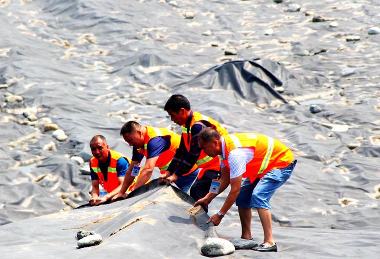 散发难闻气味的垃圾填埋场里,正在铺设防渗膜的四川省彭州市环卫系统党员,用日复一日的坚守浇灌着宜居美丽的生态文明之花。