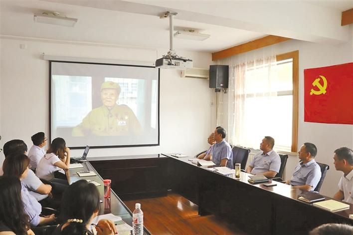 六月三十日,省纪委监委第十一审查调查室党支部和“二·二六”案件临时支部等的近二十名党员,在办案点举行主题党日活动,观看张富清同志先进事迹短片,交流学习心得。 记者 董渺摄