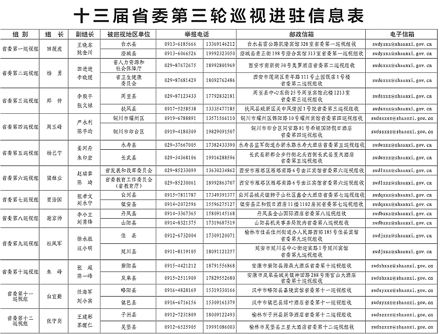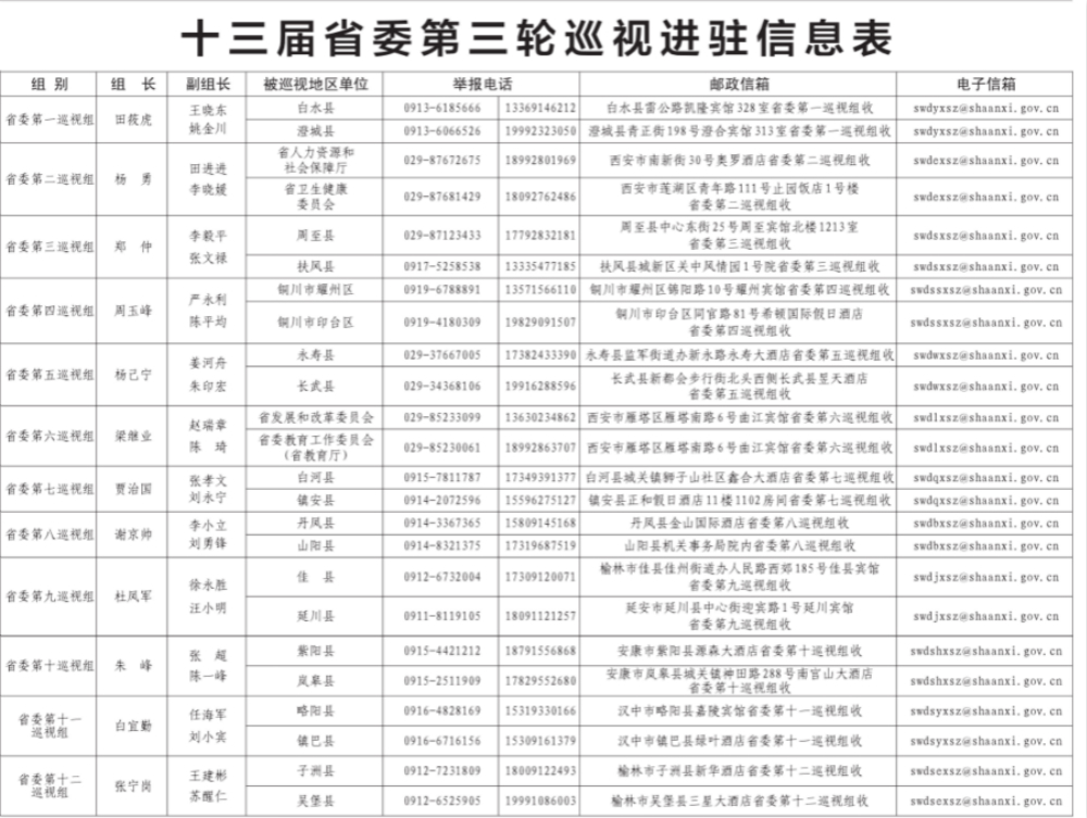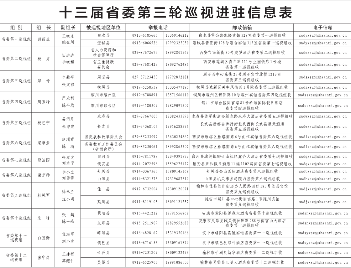 截至11月6日,12个省委巡视组完成对24个地区和单位党组织的巡视进驻,十三届省委第三轮巡视全面展开。