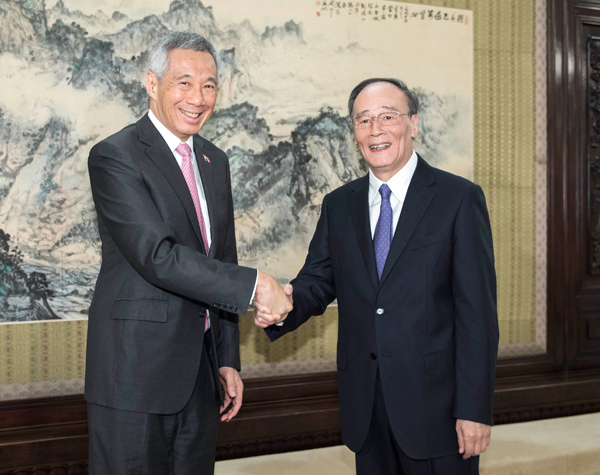 中共中央政治局常委、中央纪委书记王岐山20日在中南海紫光阁会见新加坡总理李显龙。