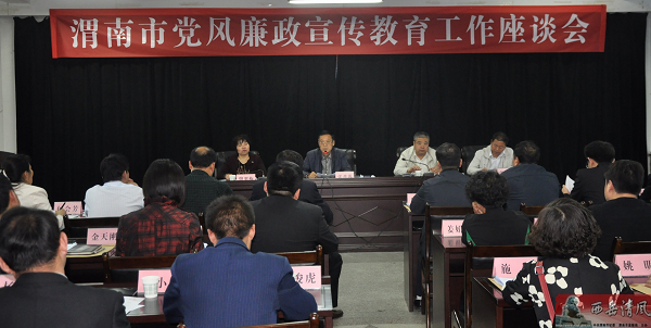4月22日,渭南市纪委在市委综合楼三楼会议室召开全市党风廉政宣传教育工作座谈会,会议总结回顾了2015年党风廉政建设和反腐败宣传教育工作,传达学习了中省对党风廉政宣传教育工作的新精神,对2016年的宣传教育工作进行再部署再安排再推进,并进行了经验交流。座谈会上,市纪委宣教研究室主任曾翠梅宣读了有关表彰通报,市纪委副书记张普选出席会议并讲话,市纪委常委杨澎主持会议。