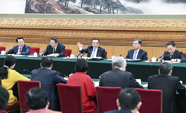 3月10日,中共中央政治局常委、国务院总理李克强参加十二届全国人大五次会议安徽代表团的审议。新华社记者 张领 摄